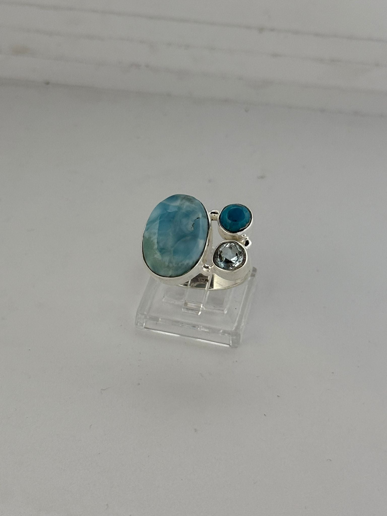 Anello in argento 925 con pietra Angelite celeste, turchese e acquamarina.