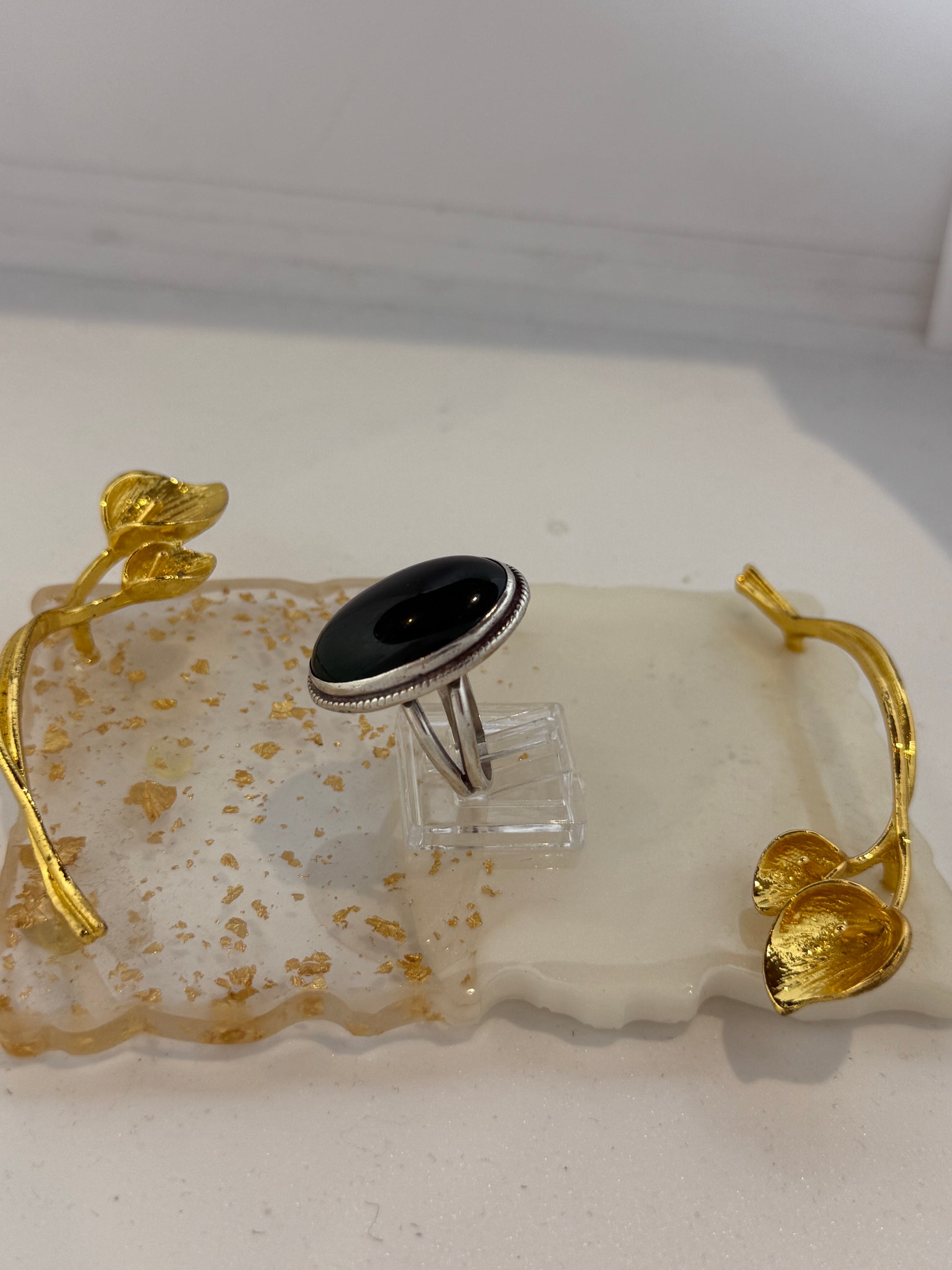 Anello in argento 925 forma ovale con pietra giada verde.