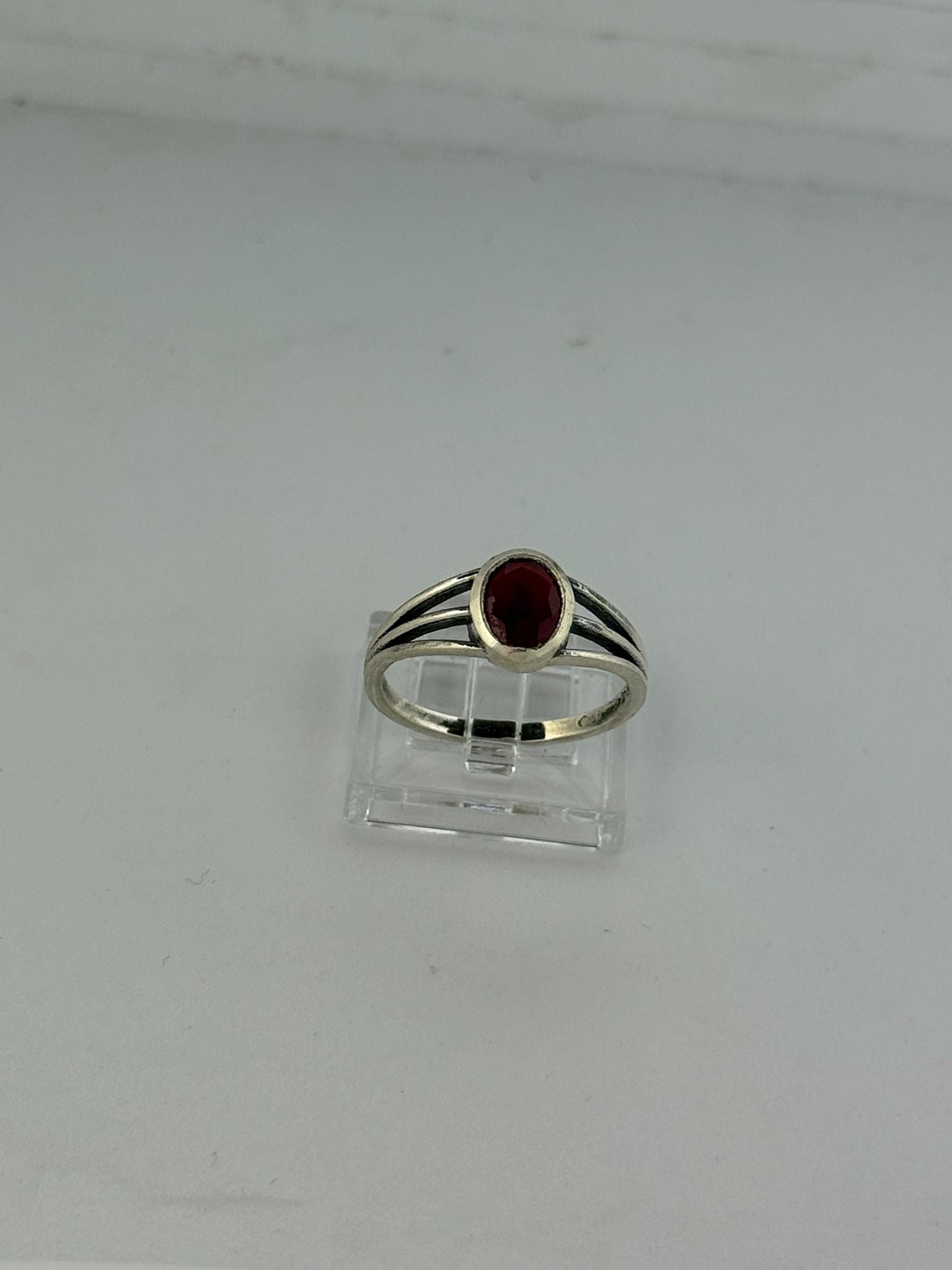 Anello in argento 925 con pietra centrale granato rosso, taglio sfaccettato.