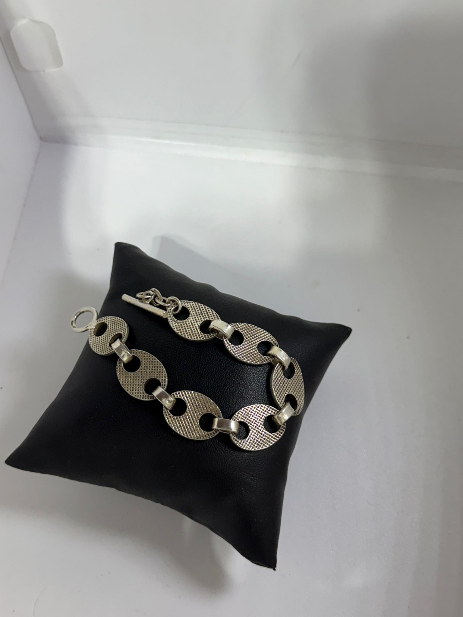Bracciale in argento 800 maglia marinaia, smaltata a fuoco color verde.