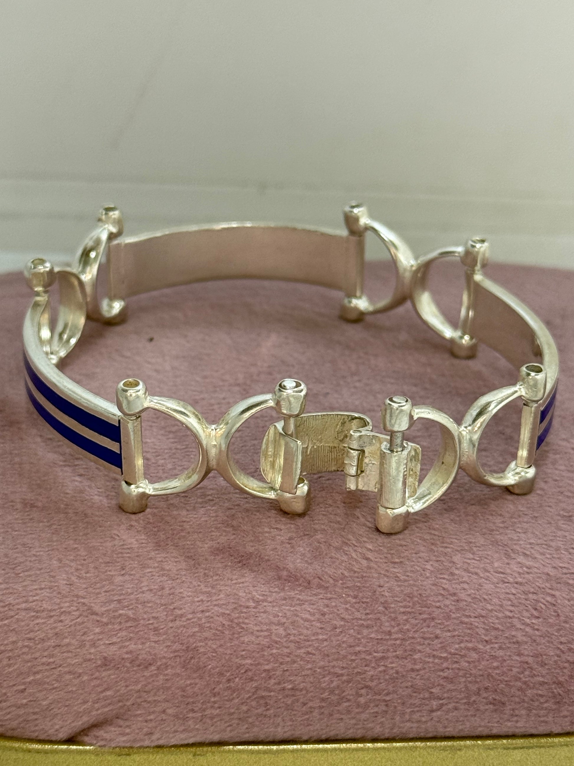 Bracciale in argento 925 semirigido, smaltato blu anni 60. Modello schiava.