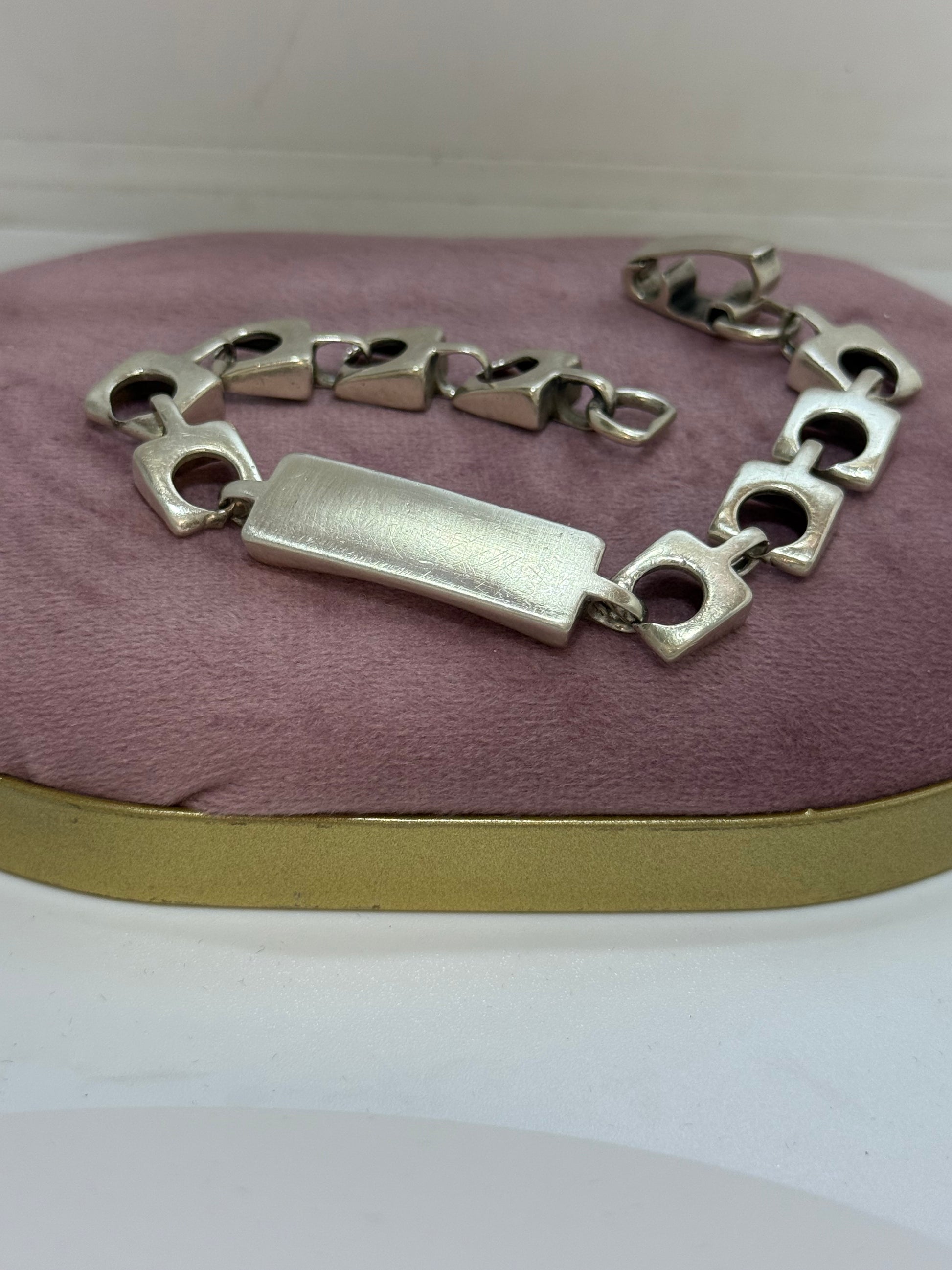 Bracciale in argento 925 con targhetta centrale e catena particolare.