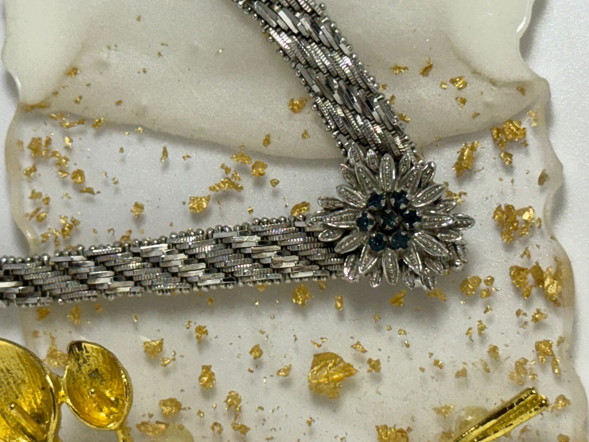 collana in argento 835 girocollo,semirigida. Arte decó, stile liberty con fiore centrale con pietre zaffiro blu.