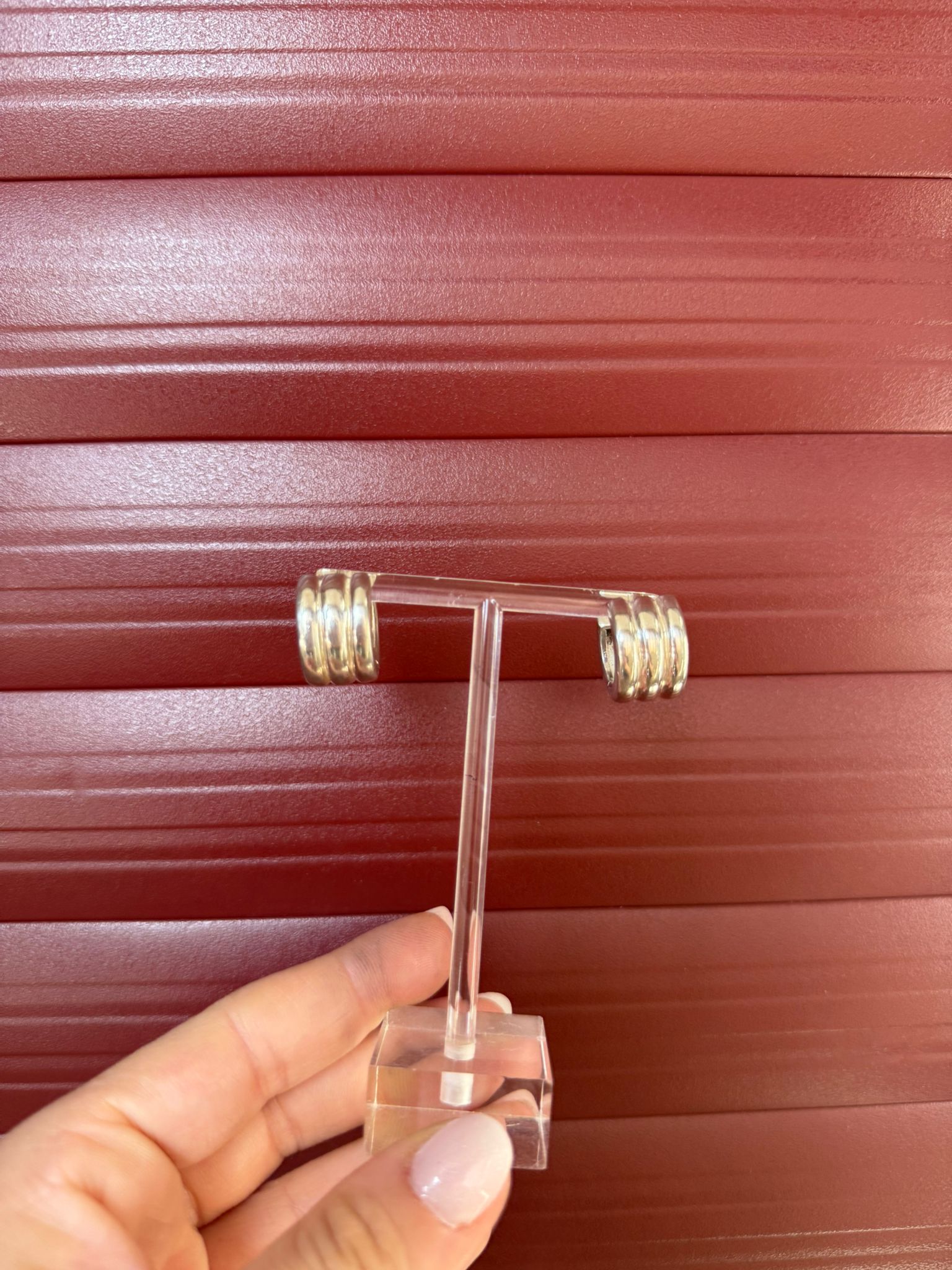 Orecchini in argento a cerchio 925 doppio, largo e piccolo con chiusura a scomparsa. Rigato.